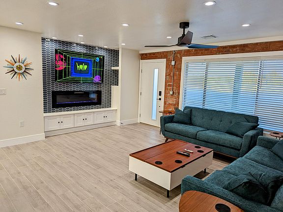 Fully furnished and Located in Old Town Scottsdale, this mid-century modern house was completely renovated in 2022 with no expense spared. Massive backyard includes 10-person hot tub, bbq+patio table, fire pit+chairs & yard games. Brand new furniture & decor in each room. Perfect for a family vacation, bachelor/bachelorette party or getaway to sunny AZ! Directly across from Eldorado Park (gym, pool & water slides, indoor/outdoor sports courts, fishing lake, playgrounds, skatepark, ramadas/picnic areas & greenbelt).