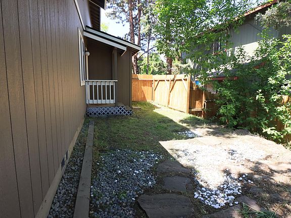 Spacious and lovely 3-bedroom condo in NE Bend with its own private yard and cozy setting! The great room floor plan boasts, large living room, cozy dining area, and a newly renovated kitchen with Three spacious bedrooms and one and a half bathrooms. Features include newer interior paint, carpets, and water heater, stylish lighting fixtures, powder bath with laundry area, and lots of storage space. Fenced and landscaped, covered front porch, attached storage shed, and a little lawn area. Great