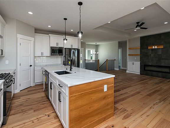 Model Home now available! Over 3600 sf ft of impeccable quality finishes, 6 BR Walkout Ranch! Open floor plan, inviting great room with hardwood floors & fireplace. Spacious kitchen with upgraded appliances, quartz counters, island/breakfast bar, & dining area. Large Primary Bedroom with walk-in custom closet & private bath. Two more bedrooms, full bath, convenient laundry & mudrm. Finished walkout lower level includes 2nd family rm, 2nd fireplace, wet bar, 3 more bedrms with large walk-in custom closets, full bath, & bonus fitness rm or office. 3 car garage, irrigation, covered deck. Great location, Must See! All information obtained from seller and public records.