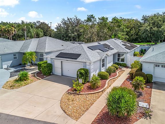 BLOCK & STUCCO COURTYARD VILLA – VILLAGE OF BELLE AIRE – 2-CAR GARAGE – NO BOND Rare 2-CAR GARAGE COURTYARD VILLA!!In the Village of Belle Aire~ enjoy PRIVACY, LOW MAINTENANCE, and Beautiful High-end Landscaping! Want PEACE OF MIND & a GREAT INVESTMENT? With NO BOND and $22,600 in PAID-FOR SOLAR PANELS(2021) transfer to YOU, the new owner, so you’ll enjoy exceptionally LOW ELECTRIC BILLS! Major updates are complete, too! ROOF (2019), HVAC (2017), and HWH (2024). Details include: CROWN MOLDING, PLANTATION SHUTTERS, FRESH NEUTRAL PAINT that makes you go, “AHHHHH”, and BRAND-NEW CARPET to squish between your toes! The kitchen features CORIAN countertops, crowned cabinetry, and PULL-OUT SHELVING. Ceramic TILE flooring flows through the kitchen, dining, and wet areas. The villa also includes a washer and dryer, a guest bedroom desk, and four bar stools that fit the kitchen counter perfectly. The ENCLOSED LANAI (not counted in square footage) expands your living space, while the PRIVATE courtyard. a TROPICAL PARADISE has NO GRASS TO MAINTAIN—Truly the PERFECT SETTING for outdoor ENTERTAINING OR RELAXATION. Located JUST ONE MILE from GLENVIEW COUNTRY CLUB and 1.8 miles from NANCY LOPEZ COUNTRY CLUB, you’ll have CHAMPIONSHIP GOLF and DINING within 5 minutes by GOLF CART!! The beautiful SAVANNAH CENTER and SPANISH SPRINGS & LAKE SUMTER LANDING TOWN SQUARES are nearby, offering RESTAURANTS, SHOPPING, BOWLING, DANCING, THEATER, and nightly ENTERTAINMENT! Recreation abounds with PICKLEBALL, POOLS, SOFTBALL FIELDS, POLO GROUNDS, REC CENTERS, and several EXECUTIVE GOLF courses: Briarwood, Walnut Grove, Saddlebrook, El Diablo, and El Santiago-- all within a couple of miles!! This villa delivers!! Come enjoy the lifestyle of The Villages! —Ideal for full-time living, a seasonal getaway, or investment.