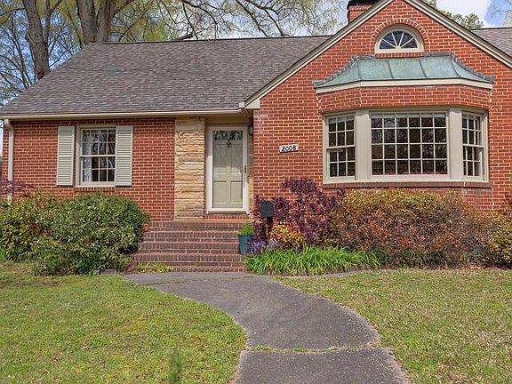 1950s brick ranch on a large lot in sought-after Watts-Hillandale neighborhood, close to all Durham has to offer. Walkable to Ninth St., Duke, parks and trails. Flexible arrangement allows for 2 bedrooms plus family room downstairs; 2 rooms upstairs can be used for bedrooms, office, workshop, studio, yoga spot, kid’s playroom… A shed dormer could increase this space as well. Natural light throughout, incl. central bay window in living room. Large arched openings, hardwoods and midcentury tiled baths. Plenty of storage, including attic and garage. Gardener’s delight, with large landscaped and fenced yard (lot .29 acres). Magnificent flower garden and flowering shrubs/trees incl. pollinator habitat/ certified wildlife habitat. Lots of outdoor seating areas with large deck and screen porch overlooking back yard. Separate building w/ garage/storage & screen porch. Chicken coop with protected run at the rear of the lot.