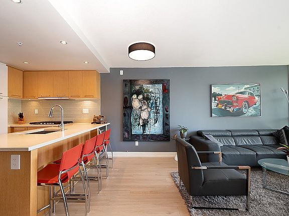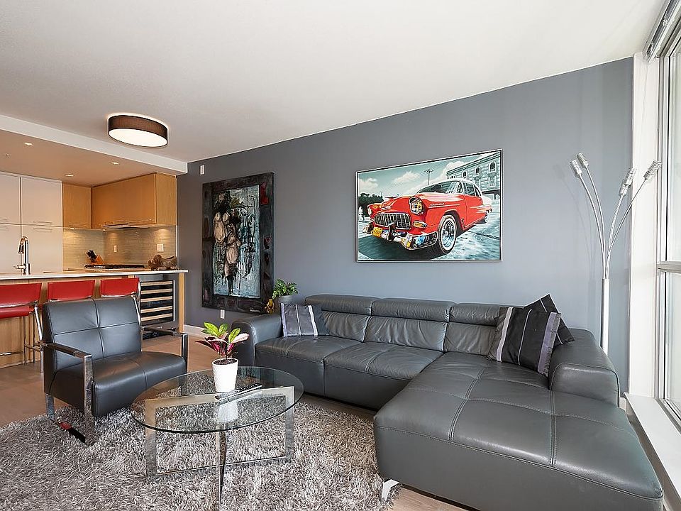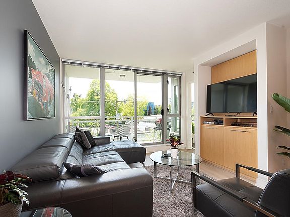 Mantra! A luxury boutique concrete development in the heart of lower False Creek steps from Granville Island, kits Beach & W4th. Facing the Quiet, Sunny & South Side of the building, this is a well designed 1 bed + den/office + flex space w/ 662sqft of total living area. New floors, chefs kitchen w/ wall oven, gas range, SS appliances, wine fridge, & floor-to-ceiling cabinets. Well designed custom shelving in the large walk-in-closet & flex room. The building has a well equipt gym & is LEED certified w/ geothermal heating and AIR CONDITIONING! Rentals/pets allowed. 1 parking 1 storage locker. Don't miss this fantastic home! Open Sat/Sun June 18 & 19 2-4pm.
