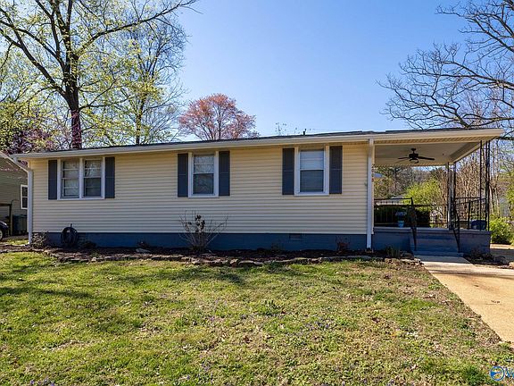 Come check out this beautiful mid-century dream in Darwin Downs subdivision. 3 bedroom 1 bathroom single level home on a large lot with plenty of driveway parking space. Enjoy relaxing or entertaining on one of the 2 large porches, one is covered and one is open. Just had roof replaced with 30 year architectural shingles, gutters added all the way around, and full house repainted. Has original windows and flooring throughout, along with modern tile in kitchen and bathroom. Under 10 minutes from from downtown Huntsville and Monte Sano state park and 15 minutes from Redstone Arsenal and Research Park.