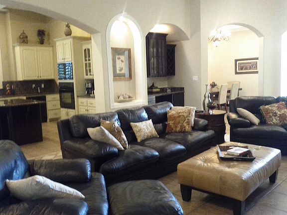 Stunning home in a gated subdivision with easy access into town for shopping and dining in a growing city! This home has beautiful details throughout from the custom tile floors to the gorgeous high decorative ceilings. The living area is large and bright with a great floor plan open to the kitchen. The kitchen was made for a chef! Beautiful granite counter that run up to the backsplash, custom wood cabinetry with lots of storage, and sleek appliances all look great next to the open breakfast area. The master bedroom is very large and has a great master bath with lots of luxurious details as well. The backyard is really a must see in person! It was made for entertaining with an extended patio and pergola! The salt water pool is fabulous to keep cool this summer too!
