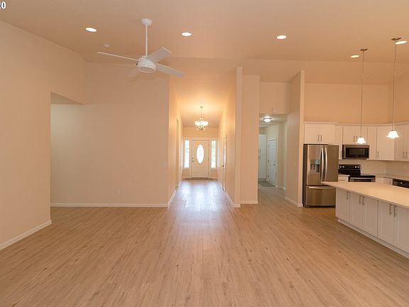 Immaculate home in upscale gated community of Sandpines West. Large over sized lot with beautiful natural setting. Great room with cathedral ceilings; vinyl planking throughout; open light and bright kitchen w/quartz counter tops; island/eat bar; upgraded appliances; finished and insulated garage; expanded driveway for additional parking; covered patio; easy maintenance yard. Move in ready!