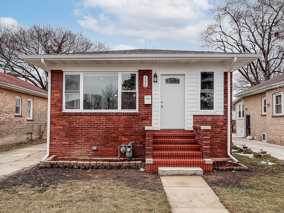 Cute brick single family rehab in Maywood! Tons of charm with updates throughout including new roof, windows, plumbing, electrical, mechanicals, kitchen, baths, fixtures, finishes, and more. Sun filled open concept main level with beautiful hardwood flooring, coffered ceilings, and wainscoting. Welcoming entry features shiplap accent wall with built-in bench. Large windows let in great natural light. Adjoining on trend kitchen includes stainless Whirlpool appliances, shaker cabinetry, subway tile backsplash, quartz countertops, and peninsula with bar seating. Two main level bedrooms + all new full bath. Finished lower level with large, carpeted recreation room, 3rd bedroom, all new full bath, laundry hook-up, and mechanicals. Sump/ejector pump + drain tile system. Spacious outdoor area with detached 2-car garage. Conveniently located near parks, nature preserves, shopping, restaurants, fitness centers, I290, and more!