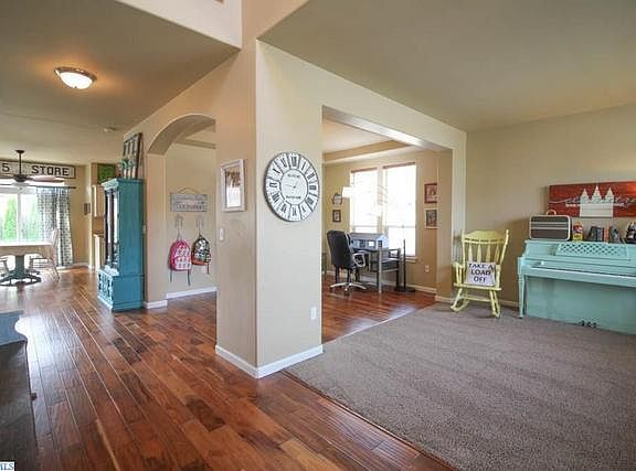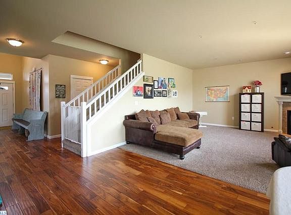 Beautifully maintained 4 BR 3 BA + a bonus room home in Cherry Blossom Meadows! Gorgeous hardwood floors on main-level! Formal living/dining room! Spacious kitchen with ample cabinet/counter space, tile counters, granite tile topped island with breakfast bar, stainless steel appliances, corner pantry, and secondary dining area! Kitchen open to bright family room with corner gas fireplace! Big master suite on upper level with corner gas fireplace and private bath featuring large shower, soaking tub, dual sink vanity, and walk-in closet! Bonus room/possible fifth bedroom! Slider off kitchen to pergola-covered patio, extended open patio, and fully-fenced backyard! Great location in quiet neighborhood close to all amenities!