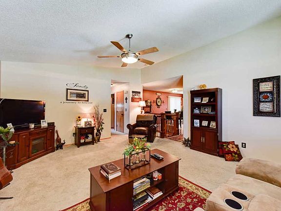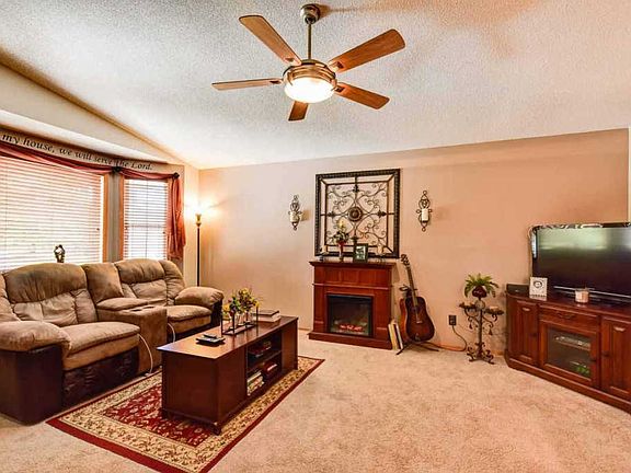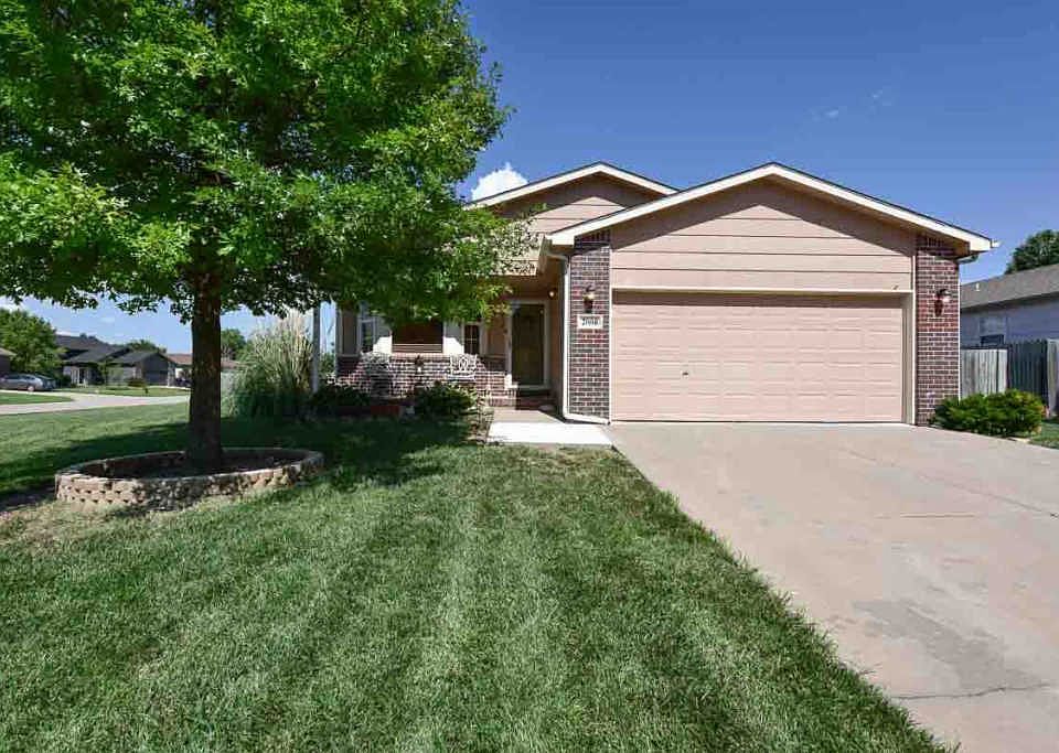 This is a sweet home! Move in ready!! Won't last long! Very well maintained home. Large two car attached garage. All appliances stay and furniture is negotiable. Close to aircraft companies and in Goddard school district. Upstairs has two large bedrooms and bath. Electric fireplace in living room, kitchen and dinning room combo. Finished basement with home theater, built-in oak entertainment center with surround sound, bedroom with egress window, bath, laundry, extra office space, and storage! Corner lot offers extra yard space for expanding your outdoor entertainment fun.