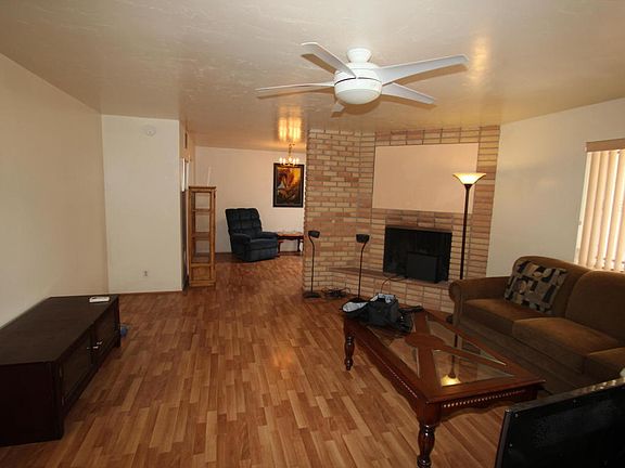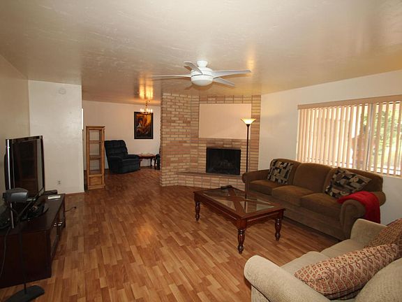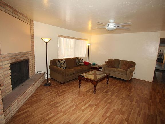 Great locale on ROlling Hills GOLF COURSE lot with expansive views of course, palm trees, and water hole. Near Rolling Hills Park. NO HOA DUES; No HOA restrictions. Mostly brick home with rear NW orientation. Easy low care lot w/fenced rear yard. Expansive covered patio off rear and fully enclosed ARIZONA ROOM. Quiet well maintained street. Laminate and tile floors throughout. Two SKYLIGHTS, Gas log FIREPLACE in living center. Formal dining room. Kitchen has loads of cabinets and counter space. Updated bath w/Travertine accents. 2-car carport could easily be converted with garage door. This is a winner! Did I mention this property is on a golf course???