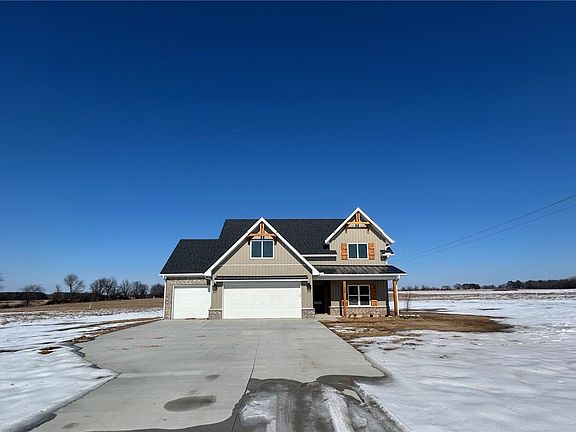 Open House Saturday 7th 1-3pm. New Construction Farmhouse style home on 1 FULL acre on a Corner Lot-you have room to breathe while being just minutes from town. Plenty of space for additional shop, pool, or garden. Come home to this open and comfortable floor plan design and enjoy serenity. Primary bedroom is downstairs and has a wonderful ensuite with a stand alone tub and tiled walk in shower. Upstairs there are 3 additional nicely sized bedrooms and hall bath. Large laundry and pantry room with rollout shelving for all your food items. Electric fireplace that you can enjoy all year long in the living area. If you're looking for the perfect blend of rural charm and everyday convenience, this one checks all the boxes. No HOA. New Construction no tax info for 2025. Due to the recent snow the yard is muddy , please do not walk in the house with muddy shoes, it would be greatly appreciated.