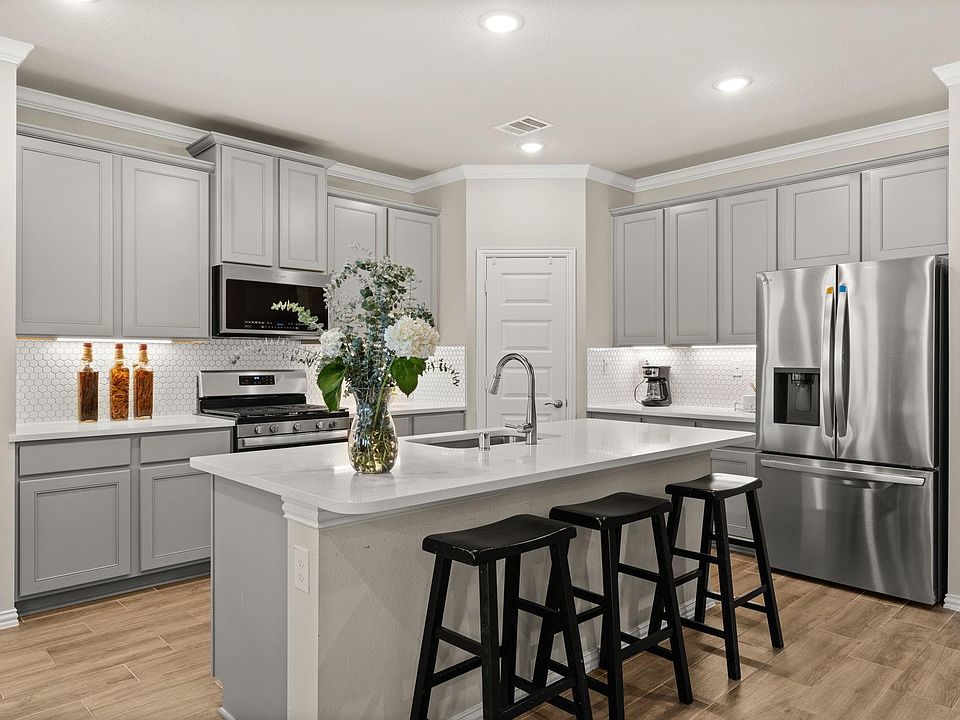 Discover this beautiful 1.5-story home by HistoryMaker, built in 2023, located in the highly sought-after master-planned community of Sunterra in Katy, Texas. W/ 4 bedrooms, 3 full baths, a private home office, & a spacious game room, this home offers both comfort & functionality. The thoughtfully designed floor plan includes 3 bedrooms & 2 baths downstairs, while upstairs features a private retreat w/ a game room, a full bath, & an additional bedroom. The kitchen includes ample counter space & cabinetry, and opens to the living area, perfect for entertaining. The primary suite offers a spa-like bath w/ a separate shower, a soaking tub, & a double sink vanity. Flooring includes wood-look tile & plush carpet. Having been lived in for only 1 year, this property feels virtually new. Sunterra residents enjoy exceptional amenities & the convenience of being zoned to the highly acclaimed Katy ISD. Don't miss your opportunity to own this lovely home in one of Katy's premier communities!