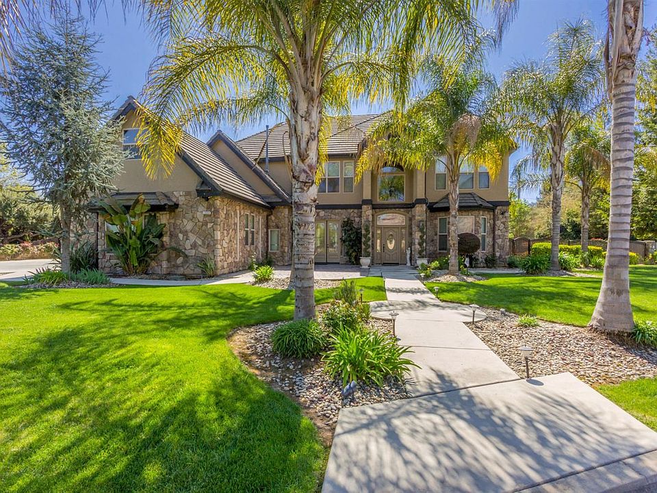 BIG PRICE Reduction! Beautiful North Bluff Estates home in upscale gated community. Open floorplan with dramatically high ceilings. Attention to detail with designer window treatments, multiple zoning for maximum climate control, surround sound, granite countertops, travertine tile, hardwood flooring, alder-wood cabinetry, alarm system and fans. The Master Bedroom features a double-sided fireplace separating the MBR and MBA. The pool with waterfall is impressive. This home is perfectly located in one of NW Fresno's most prestigious neighborhoods and is surrounded by exclusive grand homes, country clubs and golf courses (Fig Garden & San Joaquin) and is within walking distance to the Bluffs and San Joaquin River.