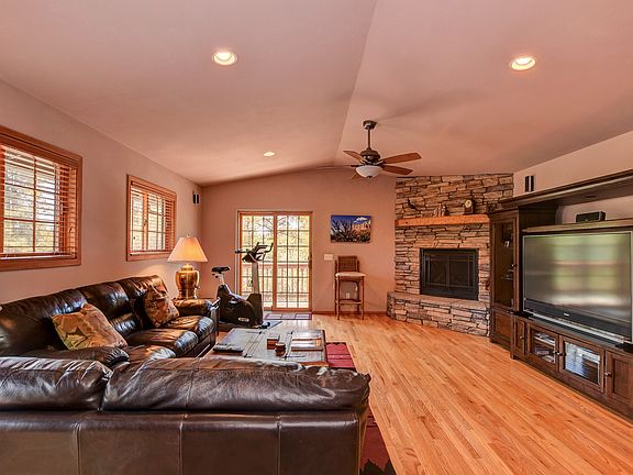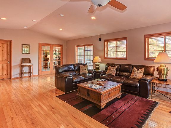 Here is the CLASSIC Prescott home you've been looking for: Lg private lot on a seasonal creek, SINGLE LEVEL, deck w/views, WORKSHOP, great neighborhood w/NO HOA, all City Utilities and just 7 minutes from the square! Beautiful natural, landscaped lot leads to a lovely home with views of mountains, pines and boulders through Anderson windows, which are throughout the home. Open living/dining area features gas fireplace, plantation shutters and Anderson patio French doors to deck. Three bedrooms ,2.75 BA, Office, PLUS an added great room w/stone gas FP, raised ceilings, and separate entrance. Two master suites in this home - each with walk-in closets. One has a 3/4 bath, one has newer bath with Jacuzzi tub, walk-in shower. Loads of room in workshop to store toys, etc. Hard to find!
