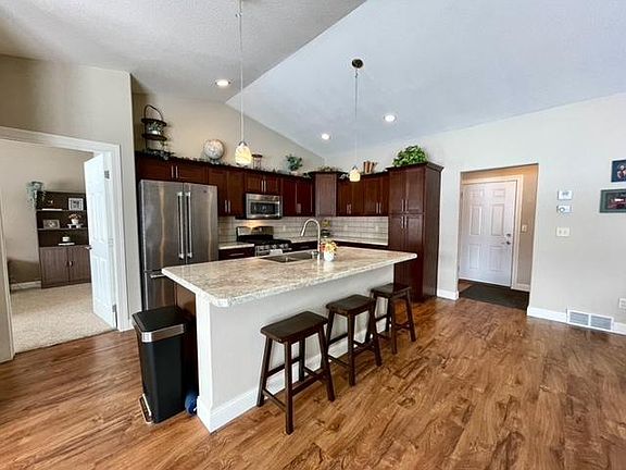 Beautiful 3 bedroom, 2 full bath, one level home in Wheatfield Estates. Why buy and pay for new? This home is in excellent condition and has been upgraded with heated garage, new front door, decorative panels and new kitchen counter tops and back splash. Also features custom blinds and back yard fire pit. Shared ownership of walking and ski trails.