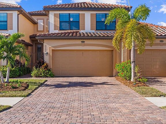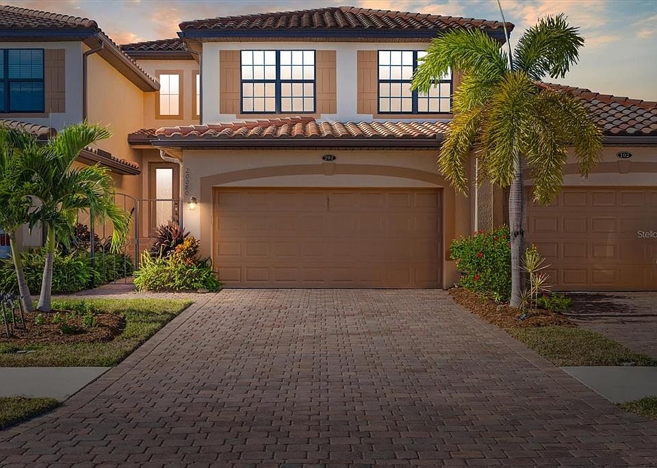 Welcome to this beautifully appointed second floor coach home located in the highly desirable Wellen Park community of Venice, Florida. Set within the gated neighborhood of Gran Paradiso, this well maintained one owner residence offers three bedrooms and two bathrooms, with oversized rooms, soaring ceilings over nine feet, elegant crown moulding, and a bright open layout that feels both luxurious and comfortable. The large lanai provides a peaceful place to relax and enjoy the Florida lifestyle. Inside, the home features thoughtful upgrades throughout including new carpet in the guest bedrooms, luxury vinyl flooring in the primary suite, and stunning tile laid on the diagonal in the living room, dining areas, kitchen, bathrooms, hallways, and laundry room. The impressive wood staircase adds warmth and character as you enter. A spacious garage with epoxy Gorilla flooring provides room for three cars or space for two cars plus a dedicated workshop area, offering flexibility for storage, hobbies, or projects. Gran Paradiso is a gated, resort style community offering a clubhouse, fitness center, pool, pickleball, tennis, miles of walking trails, and a full calendar of activities. Living in Wellen Park means being close to everything. Downtown Wellen is just minutes away with waterfront dining, boutique shops, live entertainment, and community events. Gulf beaches, top rated schools, golf courses, the Atlanta Braves spring training stadium, and everyday conveniences are all within a short drive. Perfect as a full time residence or seasonal retreat, this coach home captures the very best of Wellen Park living.