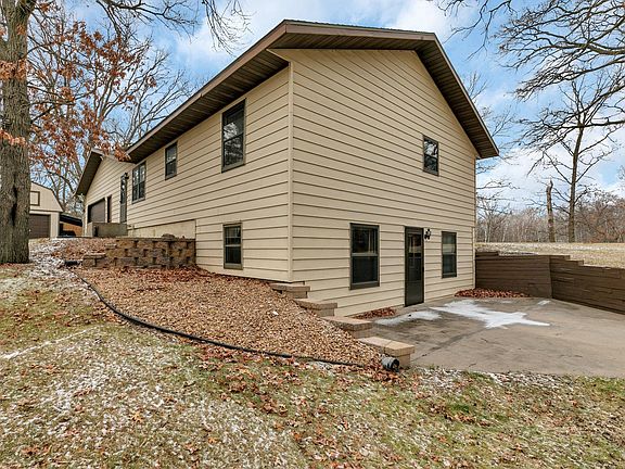 Welcome home to over 18 acres of wildlife settled in the country, tucked way back off the road is your 3 bedroom and 3 bathroom walkout rambler. Large deck off the sunken living room to watch the wildlife walk literally up to the door! Open floor design, spacious kitchen with plenty of cabinets and a snack bar. Main floor laundry and 1/2 bath are just off the garage entry. The lower level features a large family room, large rec room with a pool table that can stay and a large bedroom. The rec room walks out to a patio that overlooks the back acreage, you will be greeted by wildlife daily! The attached double garage is insulated. There is a two story barn shed and a steel shipping container for storage. The 36x28 work shop is set up nicely for a man cave, she shed, car shop or anything you desire. It is insulated and heated for year round use, is cooled and has running water. A rare property with tons of room to play, conveniently near I-94 for travel ease. You don't see this often!
