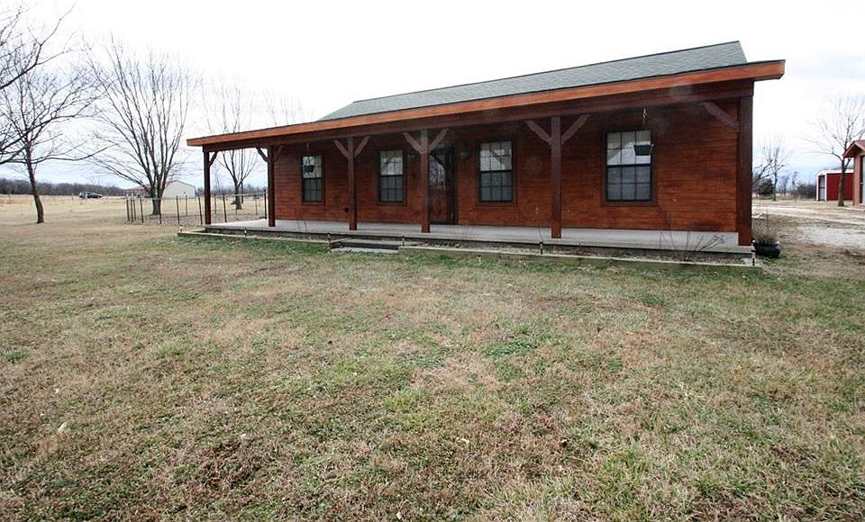 Turn-key Ozark mini-homestead on 5 acres +/- w/ full perimeter fencing, pasture, corral. Single story ranch w/ open living/dining/kitchen, easy care stained concrete floors & vaulted ceiling. Covered front porch & rear patio. Young orchard planting features peach trees and a variety of apple seedlings. Future nut producers include established black walnut and pecan seedlings. Nearly new in-ground storm shelter. Shared access to the small fishing pond at SW corner of the property.
