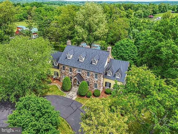 Welcome to a stunning countryside estate in the heart of Round Hill, VA, where scenic landscapes and equestrian properties abound. As you approach this incredible home through its winding entrance, you're greeted by a stately appearance, mature trees, and a grand circular driveway. The property boasts 10 gentle acres, a carriage house, a large covered patio and an inviting in-ground pool, perfect for relaxing and entertaining. This elegant home features 4 spacious bedrooms and 4.5 baths in the main house, each bedroom with its own en-suite bath, offering comfort and privacy for all. The huge primary suite is a retreat in itself, complete with a gas fireplace, sitting room, and generous closets. The large formal living and dining rooms exude sophistication, while the open eat-in kitchen and family room create a warm and inviting atmosphere. The family room, with its wood coffered ceilings and a cozy wood-burning fireplace, is the heart of the home. While the kitchen and baths retain their original charm, and the large unfinished basement presents an opportunity for customization, the home’s superior setting and remarkable features make it an absolute stand out. In 2023, over $160,000 was invested in replacing the roofs, gutters, and gutter guards, ensuring peace of mind and enhancing the home's durability and appeal. The stone front, Hardie plank siding, and standing seam roofs add to the home's timeless elegance. The property includes a carriage house with a two-car garage and a finished apartment above, providing additional living space and versatility. This apartment is perfect for guests or an au-pair, featuring a full bath and a comfortable living area. Imagine waking up to breathtaking winter mountain views or spending your summer mornings enjoying coffee on the patio, listening to the serene sounds of nature and horses. Having enjoyed many occasions here as a guest, it is a privilege to offer this stunning home for sale. It’s a rare opportunity to own a piece of Round Hill’s scenic beauty and tranquility.