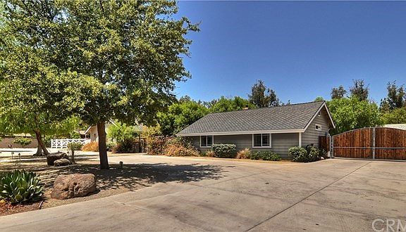 This fabulous single story country home is located on a flat usable acre. With over 3614 square feet of gracious living 3 bedrooms & 3 baths. Bonus room can be converted back to fourth bedroom. Totally remodeled with state of the art modern kitchen that opens to the huge breakfast area. Rich dark cabinetry in the kitchen is accented by stainless appliances, recessed lights & granite counters. The spacious family room is adjacent to the formal living & dining room. For the best in outdoor California living the grounds of this home are like paradise. Multiple covered patio areas have built in BBQ, areas for dining, fabulous rock fountain/spa & meandering walk ways. There is also a professional quality chicken coop, incredible state of the art green house & raised garden areas with irrigation. Equestrian facilities include a 4 stall Castlebrook barn with large Tack room with bath, hay storage area & riding arena. The oversized RV area can accommodate the largest of RV's with hook up & dump built in. For the smaller pets there is a fenced dog run for convenience. Multiple fruit trees make this a true garden of paradise. There is a large play gym area that is shaded by mature trees. Totally private, you will never want to leave this special home. Additional amenities include dark rich hardwood flooring, gated front courtyard entry, three car garage, ceiling fans, separate main floor master with modern bath, newer roof & so much more!!