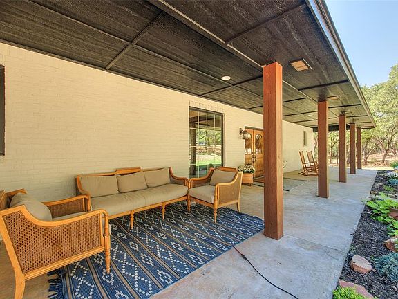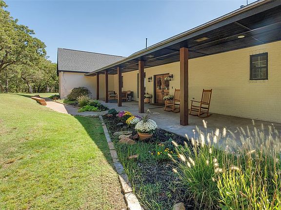 Step into the warm embrace of Hickory Hills, an private gated acreage community nestled just moments away from Lake Arcadia, the convenience of I-35, and the charm of Edmond. As you pass through the gates, a winding path leads you to a truly exceptional property, discreetly positioned amidst over 10 acres of natural beauty. The foliage gently parts to reveal a recently revitalized modern ranch-style residence. An inviting front porch, adorned with rustic columns, welcomes you with a pair of stately double doors. Inside you'll be greeted by a generousl living space boasting cathedral ceilings with rustic overhead beams. Modern fixtures complement the hardwood floors, while a magnificent floor-to-ceiling stone fireplace serves as a striking centerpiece. Natural light pours in through ample windows, infusing the room with an inviting radiance. Nearby is a tastefully updated eat-in kitchen, featuring gleaming stainless steel appliances, contemporary fixtures, and granite countertops with a central island. The breakfast table is bathed in the soft glow of nearby windows. The same hardwood floors continue into a spacious primary bedroom, where you'll discover a rejuvenated en suite bath and a spacious closet. A dedicated study, adorned with paneled walls and Pella windows, awaits your contemplative pursuits. On the opposite side of this splendid home, two bright and airy guest bedrooms beckon, sharing an efficient Jack-and-Jill bathroom. Ascend the stairs to find a cozy study area and a versatile bonus room, perfect for storage or play. The back patio overlooks a gentle slope—a perfect retreat for savoring your morning coffee or unwinding with an evening glass of wine. Welcome to Hickory Hills, where natural beauty, modern elegance, and privacy converge to create a haven of serenity and sophistication.