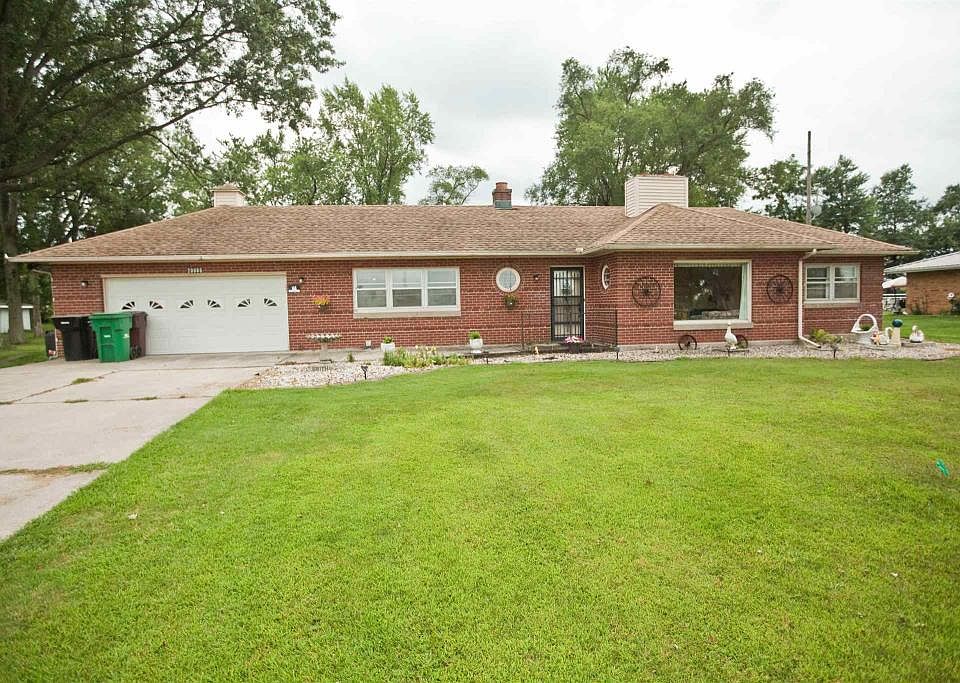What a solid house. All brick exterior with everything conveniently on one level. Almost an acre of land (.90 acres). Great flow to the home with limestone fireplace separating the front room and family room. Tile bathroom located between the two bedrooms. Newer stainless steel appliances. Updated bathroom with walk-in shower. Great screened in porch with easy access off the kitchen. 2 car attached garage. Along with an oversized, heated, 2 car detached garage (24x30) with cement floor. 2 sheds located behind the detached garage (could be a great chicken coop). Huge yard with farm field behind the property. Front Yard also has a sprinkler system.