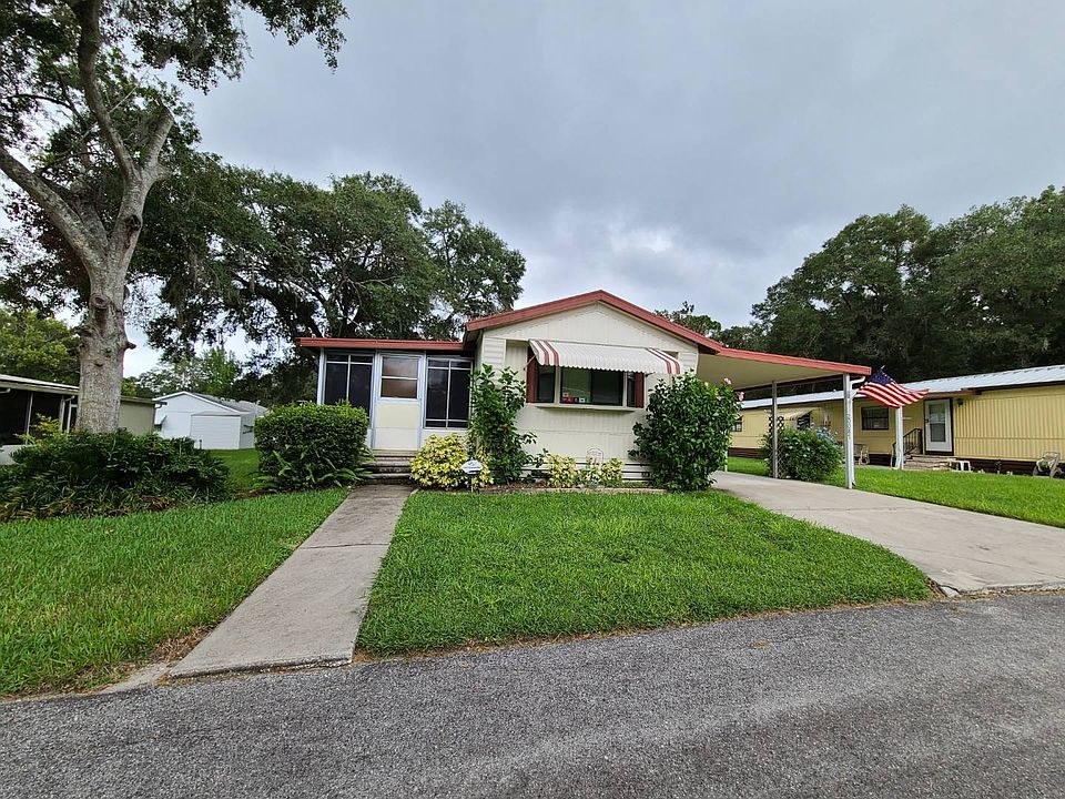 Waiting just for you! This fully furnished, well maintained 2 bedroom 2 bath is as cute as a button. Enjoy living in this 55+ reasonably priced leased lot mobile home park. This home has an open split floor plan with 2 bedroom and 2 baths. New laminate flooring, water heater,HVAC, screened porch, updated baths and kitchen. New breaker box. With a 2 car carport and attached storage shed, living could not be any easier. Located close to shopping and commerce for you convenience.