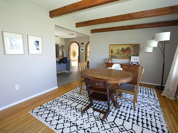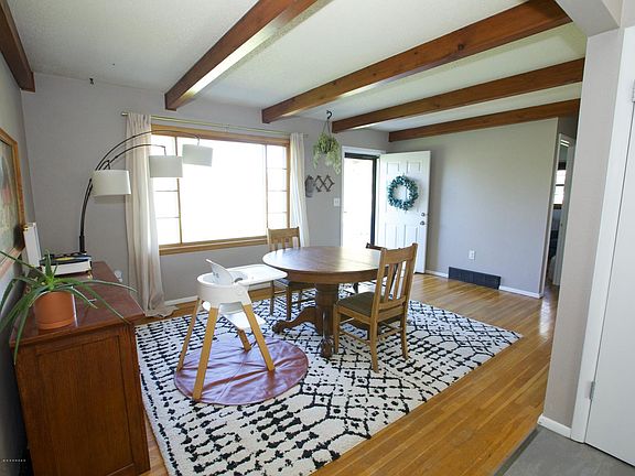 Updated 1.5 story home beaming with character situated on a large corner lot with an oversized 2+ stall detached 24 x 30 ft garage. Enjoy ample space in the living room with tall ceilings & feature brick fireplace. The kitchen is fully updated with white cabinets, center island, stainless steel appliances, and a HUGE walk-in pantry! Beautiful dining room space off the kitchen with a big front window, wood ceiling beams & original hardwood floors that carry through down the hall to the two main floor bedrooms. The full bath on the main floor was completely remodeled too. Upstairs, enjoy two additional bedrooms. Plenty of extra storage space & opportunity in the unfinished basement. This home has so much to offer you, it is a must see - schedule your showing today!