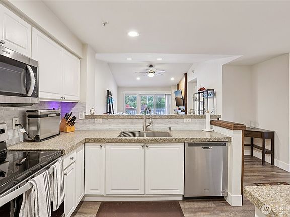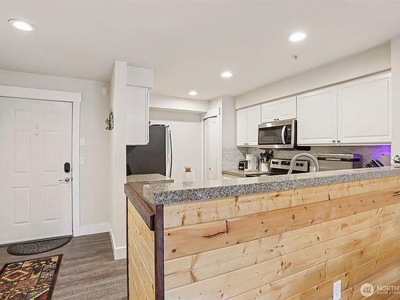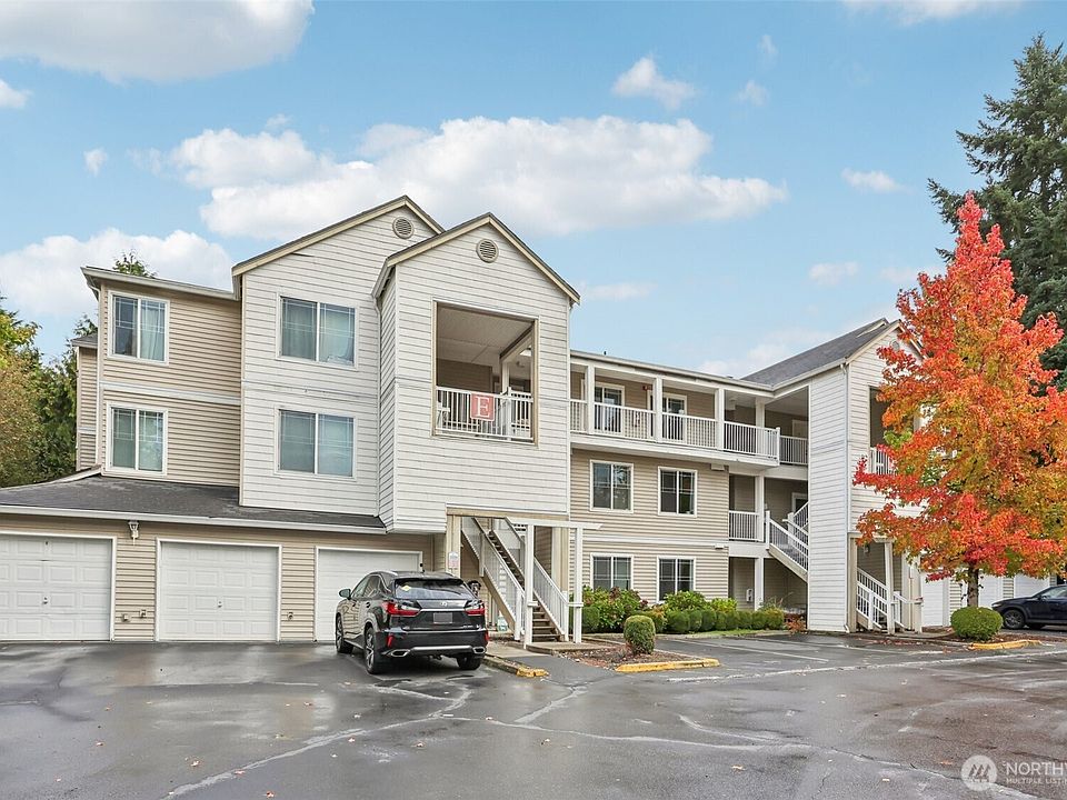Welcome to this beautifully maintained 2-bedroom, 2-bath top-floor condo in the desirable Tambar Community. Ideally situated near shopping, dining, parks, & major transit routes, this home offers easy access to both downtown Seattle & Bellevue. Step inside to a bright & airy open-concept living space featuring vaulted ceilings & large windows that fill the home w/ natural light. A covered balcony off the living room provides the perfect spot to relax or enjoy a morning coffee. The private primary suite includes a spacious WIC & ensuite bath, creating a comfortable retreat. Enjoy the convenience of a 1-car garage w/ plenty of add'l storage. A wonderful opportunity to live in a well-kept community close to everything the area has to offer.