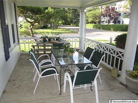 Seasonal Rental. Spacious and clean Spring Lake colonial with great front porch, large rooms, big back yard and garage. Just two blocks to the beach and convenient to town and parks. Den on 1st floor could be 1st floor BR with its own full bath. 5 BR's and 2 BA's upstairs, including one king and two queens. Pets negotiable. Includes North End locker and 5 pool/beach badges. Not available until 8/18/18. $4,500 per week in Aug. through LD. No longer available for winter.