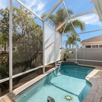 Beautiful inground pool in screened enclosure. Privacy fence in the back yard. Patio with awning and patio furniture to provide shaded area for barbeque. 3,785 square feet of living space. Open design concept for living room, dining room, and kitchen. The master bedroom has a king-size bed with walk-in closet. The guest bedroom has a queen size bed. Office space is available with a murphy bed. Washer and dryer in the attached one car garage. Furnished with all the essentials for daily living. Kitchen includes dishwasher, refrigerator/freezer, stove, microwave, and all essential pots, pans, dishes, and utensils. Located halfway between Brownwood and Sumter Landing in The Villages. Yearly lease with renewal option. $1,000 deposit plus first and last month's rent due with the signed lease. Small pets are acceptable with a $500 non-refundable pet deposit. We will pay for lawn service, pool maintenance, and water/trash/amenities fees. You are responsible for electric and cable/internet.