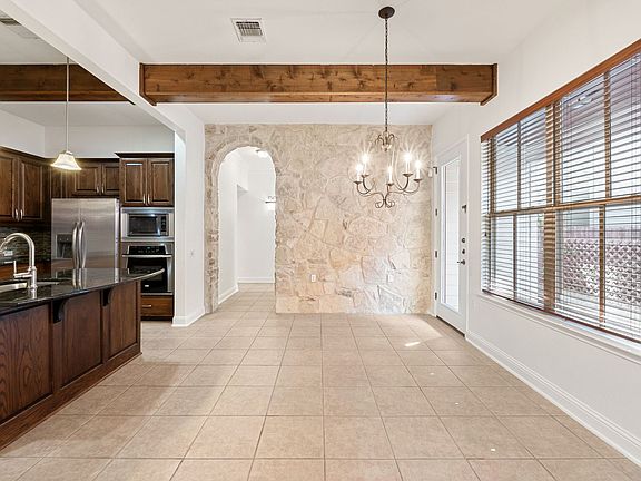 Highly sought after single story in Mueller located on pocket park. Beautiful 3 bedroom, 2 bath, with 2 family rooms. Recent high-end kitchen remodel- granite countertops, glass tile backsplash, Bosch cooktop. High ceilings, open floor plan, stone accent wall in kitchen/dining. Walking distance to farmers market, grocery, restaurants.