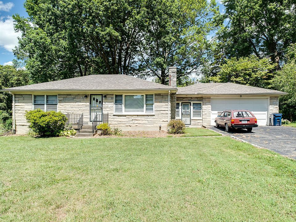 New Price!! Great Opportunity in convenient location! This home sits on a 1 acre lot! This ranch home with partially finished basement is ready for new owners to put their touch on it! Quaint bedford stone exterior. You will enter into a spacious living room with gas fireplace and hardwood floors. The eat in kitchen has appliances that will remain. The 2 bedrooms are large with original hardwood flooring. You will find an abundance of closet space and storage in this home, including accessible attic space. The main floor also has a family room with new carpet. There is a partially finished basement with a ton of potential. There is an area for a kitchen and a bathroom. The washer/dryer will also remain. The roof is only 1 year old. Attached garage! You will love the yard!