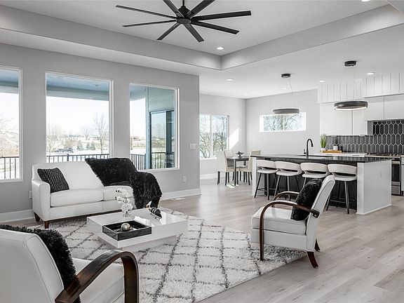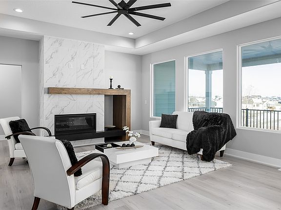 Welcome to Blooming Heights South! Ruby plan by KRM Custom Homes. Contemporary design begins at the exterior and carries throughout the home. Modern roofline with Hardie plank exterior. Two spacious bedrooms with two and a half baths on the main level. Gourmet kitchen w/custom-built range hood, spacious island w/ waterfall sides, & walk-in pantry with trim-built shelving. Stunning floor to ceiling tiled gas fireplace w/ custom mantel in the great room w/tray ceiling & oversized windows to take in the natural light & peaceful views. Laundry room pass through to primary closet. Dual vanities, tile shower and commode room in primary bath. Large cedar deck with Westbury railing. Walkout lower level features 9’ ceilings, a full bar, large family room, 2 bedrooms with walk-in closets & a bath. Upgraded cabinetry & hickory accents throughout. Simply a must-see home. This home is complete and move in ready!