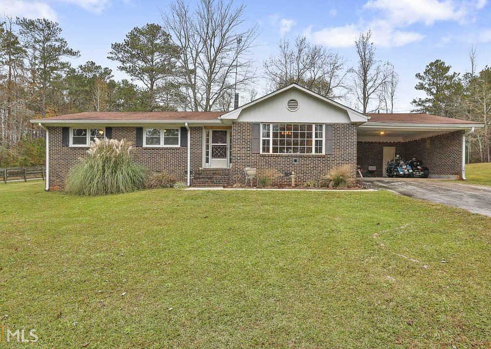 Looking for a move-in ready brick ranch in the countryside? Lucky you because you found this fantastic one level, 4-sided brick home with loads of charm. This 3 bedroom, 2 bath home is welcoming with room to spread out. Enter to a large living/family room with lovely picture window. Kitchen has a sought after vintage farm house sink, beautiful wood top antique island, fully functional vintage stove, and breakfast area. The dining room features room for a large table, with doors leading to the fenced backyard, relaxing deck with pergola and patio with water features. Beyond the fence, there is a storage building and another fenced area with water supply, suitable for goats or chickens. Home is on public water, but does have a separate well for irrigation and animal purposes. Windows and water heater were replaced in 2020; HVAC serviced recently. Easy access to Newnan and Interstate 85. This is a wonderful opportunity to own a move in ready brick ranch for under 200k!