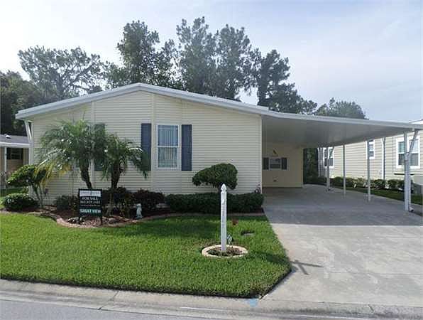 Great View located on the wate Beautiful two bedroom two bath plus den.This house is a2007 Palm Harbour 1456 square feet, great features laminate floors in the living area and den,carpet inbedrooms,new membrane roof installed in 2017,new refrigerator in 2015,Florida room enclosed 2015.Beautiful long lake views,oversize carport and shed