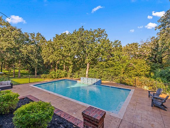Nestled on a full acre in the highly sought-after Peninsula at Twin Coves in Flower Mound. Backing to Corps of Engineers property and Twin Coves Park at Grapevine Lake, this stunning two-story luxury home seamlessly blends upscale design with everyday family comfort. Boasting 5 spacious bedrooms and 4.5 beautifully appointed bathrooms, this home offers ample room for both entertaining and private retreats and is located in Lewisville ISD with great Flower Mound schools. The expansive three-car garage adds convenience, while the large backyard features a sparkling pool, perfect for outdoor gatherings and warm Texas evenings. Inside, the open floor plan is filled with natural light and highlighted by thoughtful architectural touches. The living room invites relaxation with its vaulted ceilings, stone fireplace, and skylights, creating a warm and inviting atmosphere. The chef’s kitchen is a culinary dream, offering abundant cabinet space, stainless steel appliances, a large kitchen island, double ovens, built-in refrigerator, and double sinks — all designed for both function and style. An upstairs gameroom with natural light, a decorative fireplace, and accent lighting provides the ideal space for movie nights, lounging or play. The primary suite is a true retreat featuring a fireplace, private patio, and an ensuite bath with a separate tub, perfect for unwinding in luxury. This home is a show stopper with elegant finishes throughout, and generous indoor and outdoor living spaces, this home truly checks every box for those seeking both sophistication and comfort.