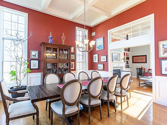 This stately, all brick, one owner home is nestled on a flat, ½ acre cul-de-sac in the desirable Forest View Plan. It features an expansive living space with 12-foot coffered ceilings, hard wood floors, 2 story foyer, tons of natural light, 4 spacious bedrooms, 4.5 baths, & 3 car garage. The gourmet eat in kitchen is a chef’s dream, w/granite countertops & spacious island, providing plenty of space for cooking/hanging w/ family & friends. Hosting will be a dream w/ the trex deck off the kitchen that leads to the flat rear yard. The kitchen is open to a large family room w/ fireplace & built-ins. Dining room w/ floor-ceiling windows, living room, ½ bath & laundry complete the 1st floor. Retreat to the large master suite w/fireplace & ensuite w/ large glass shower, jet tub, double vanity & walk-in closet. 3 more bedrooms w/ large closets, 1 w/ another ensuite, & hall bath finish off the upstairs. The finished game room w/ bar, full bath, lots of storage, home office & walk out patio.
