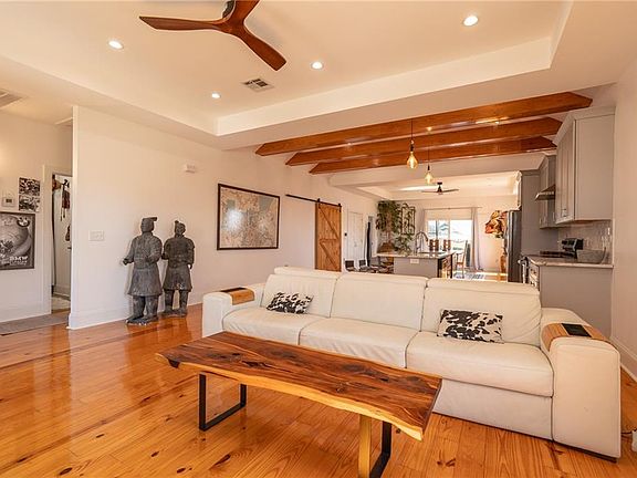Just minutes from Downtown New Orleans, this 3-bedroom, 2-bath home combines modern comfort with timeless character. The open-concept layout features high ceilings, abundant natural light, and striking exposed wood beams over the kitchen — the true heart of the home. Gorgeous hardwood floors flow throughout, and the kitchen is equipped with stainless steel appliances and elegant finishes that make entertaining effortless.