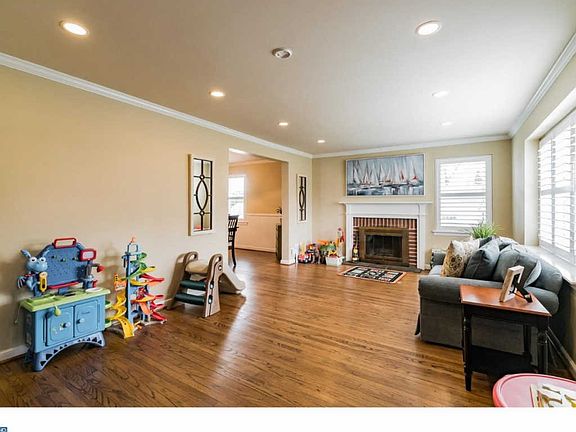 Located in Springfield Township, on just over a third of an acre, this 4 bedroom 2.5 bath Cape style home has been well maintained and is move-in ready. With approximately 2,400 SF of living space on two levels, this home features an open concept living space, beautiful hardwood floors, two fireplaces, central air, whole house water softener/purifier, fenced yard, and public water/sewer. As you enter the home into the living room, a wood burning fireplace with brick surround provides a great focal point to design a welcoming space around. Through the living room is the formal dining room, which opens up into the generously sized great room. The great room has wood beams running across the ceiling, a large bay window to bring in natural light, and a stone surround fireplace to keep it cozy. The eat-in kitchen is nothing short of functional and well-appointed featuring plenty of cabinet storage, an island with stool space, and stainless appliances. Just off the kitchen area is a mud room that features additional cabinets with coat hooks, and a small desk. Large double doors from the mud room lead out to the side of the home. The 4th bedroom is located on the main living level adjacent to the living room, in the front of the home, just before heading upstairs. A half bath with laundry room finishes off the main floor. Upstairs, the master bedroom is spacious and features a newly renovated bathroom with a large glass surround shower and double sinks. Two additional bedrooms and a full bath finishes off the 2nd floor. Out the rear of the home is a large covered deck overlooking the beautiful fenced in yard. The basement is partially finished, providing for great additional storage. Washer/Dryer included in sale of home.