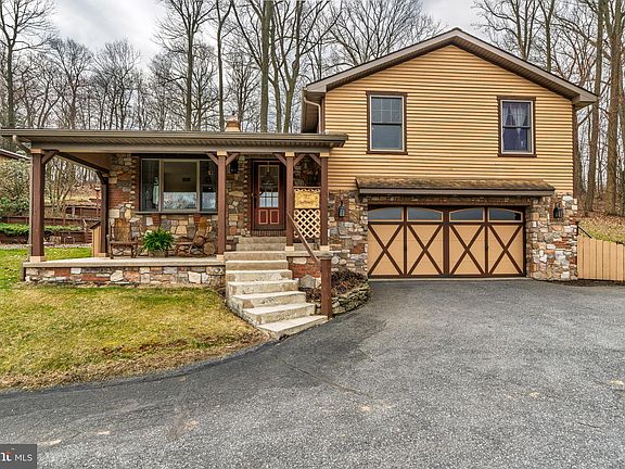 Welcome to a private retreat with modern conveniences. This 3 bedroom, 2 bath home has picturesque views of meadows, a pond, and farmland from both the front porch and living room. The kitchen features stonework and exposed beam walls, tile countertops and backsplash, butcher block island, stainless refrigerator and range hood, and a garden window and sliding glass door with natural light and views of nature. The upstairs features the main bedroom with a centerpiece stonework wall and large closet, full bath with another garden window, and 2 additional bedrooms with natural light. The lower level offers an attached 2-car garage, laundry room, and spacious finished basement flexible for your dreams of entertaining, play room, office, etc. Complete with a full bath with tile countertops and walk-in tile shower! The backyard had a large deck and covered grill bar for all of your entertaining, as well as expansive views of rural landscape. Conveniently located just a short drive to Harrisburg, Lancaster and only minutes to the PA Turnpike. Don't miss this retreat to call home!