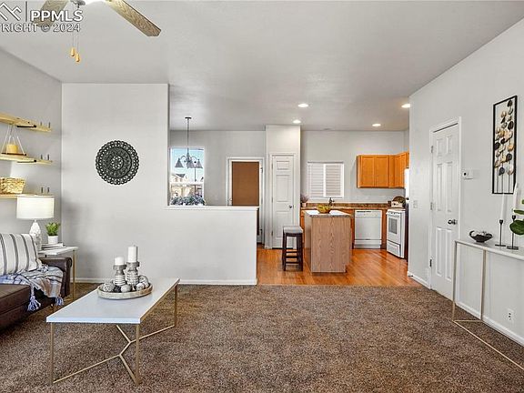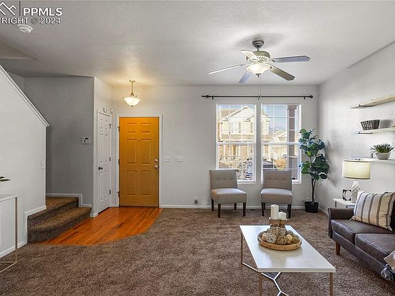 Recently renovated, move-in ready 2-bed, 2.5-bath townhouse in The Bluffs at Spring Creek. Updates include new carpet, new interior paint, and a new roof. Twin primary bedrooms, each with separate baths. AC and mountain views! Centrally located! Close to shopping and i-25. About 13 minutes from Fort Carson, 15 minutes from Peterson Space Force base, 25 minutes from the Air Force Academy and 13 minutes from Downtown.
