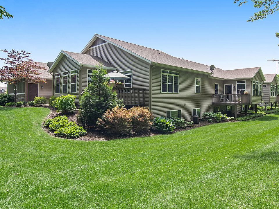 Quality built condo shows pride of ownership with all of the amenities! Superb setting with trees to the side and back. Step inside and enjoy the convenience of a private entry with a boot box area and a large kitchen with extra high, beutiful cabinets and an oversized bar area. Great room with 9' ceilings and an open stairway. Step into the adjoining 10'x16' 4 season sunroom. Enjoy the huge master suite with walk in closet and full, floor to ceiling tiled shower. MFU and half bath. Downstairs opens into additional space w/ 9' ceilings, daylight windows, a large rec room, bath, bedroom, and storage area. Other amenities include tile floor, board & batten, transom windows, under cabinet lighting, walk in pantry, cambria countertps, partial kitchen in lower level, stall finished garage.