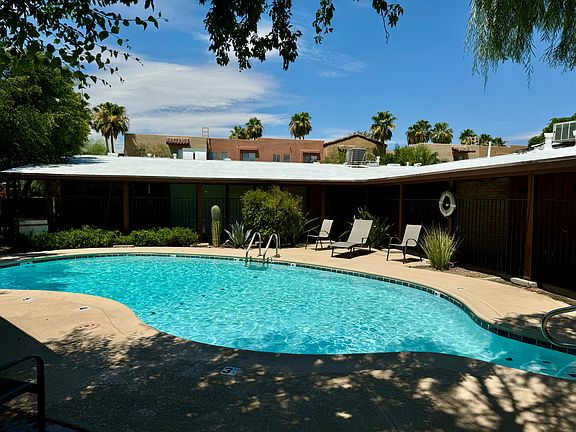 A rare opportunity awaits you! Discover this spacious two-bedroom apartment with a fireplace, granite counters, and gas appliances nestled in the highly sought-after Sam Hughes neighborhood, just one block east of the University of Arizona. This property boasts lush landscaping, a saltwater pool, and beautiful plank flooring. Enjoy the convenience of an on-site laundry room and off-street parking, all within a serene and quiet setting. The location is unbeatable it is within walking distance of the UA and close to Banner Medical Center, light rail, bike paths, and a variety of restaurants. Don't miss out on this gem! The owner is a licensed real estate broker in the state of Arizona.