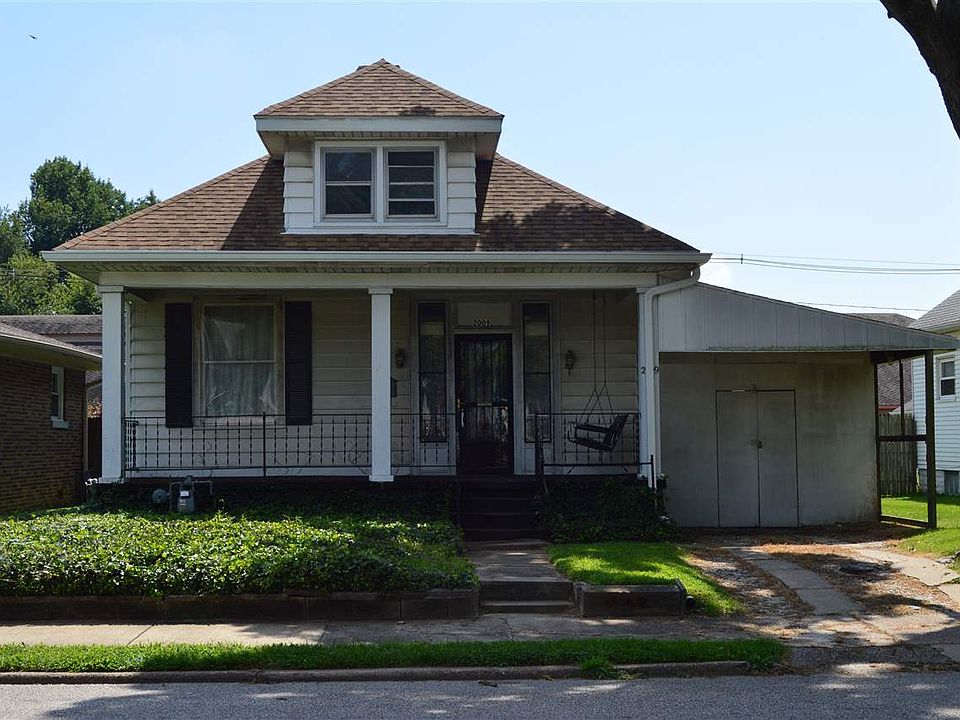 This 2 bedroom bungalow is 1 mile from U of E. If you are looking for a home with character you can add your style to, look no further. It has a welcoming front porch with a swing that stays. From the front porch, you will enter the living room with, large pocket door & fireplace with beautiful mirrored mantle. Then continue through the wide doorway with ornate woodwork into the dining room which also has a chandelier. There are hardwood floors in every room on main level except kitchen & bath. There is a partial unfinished basement. There is a 12x30 carport that the seller had closed in the front for storage that could be opened back up. In the fenced-in back yard, there is a yard barn that stays & a covered concrete area that would be great for cookouts. Home does need TLC & is being sold AS IS & is priced accordingly. Measurements are believed to be accurate. It is the responsibility o.f the buyer/buyer's agent to verify