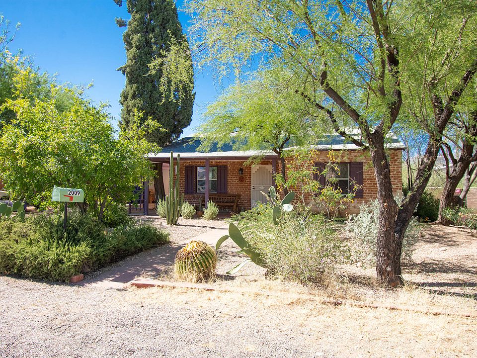 Classic Central Tucson Home in Woodland Park! VERY quiet! Polished concrete floors, saltillo tile kitchen, HUGE room in back that can be used as a Master Suite with a full bath or a 2nd living area. DUAL COOLING!!! Large storage room/workshop off carport. Beautiful desert landscape w/gravel in front and rear of home as well as drip irrigation. Walled rear yard with sliding gate entry. Walking distance to restaurants, groceries, shopping, hardware, etc as well as less than half a mile to Conner Park! 1.5 miles to the University of Arizona and less than a mile to Banner hospital. You can't get more central than this!!! Schedule a viewing as this one will go quickly!