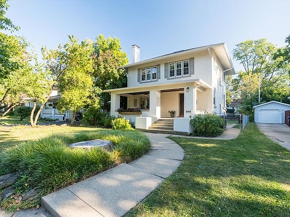 This attractive home is nestled on a newly brick-paved street in Founder's Grove -- one of Bloomington's most beautiful and desirable neighborhoods! Inside you will discover rich hardwood floors, natural woodwork, tall ceilings, wood columns, and custom built-ins throughout. The spacious living and dining rooms create an inviting flow--ideal for entertaining or quiet evenings. The bright, renovated kitchen features 2023 stainless steel appliances, quartz countertops, quality cabinetry, and a pantry for extra storage. Upstairs you will find three bedrooms, full bath, and a cozy bonus room for an office or reading nook. Surprises await downstairs with another full bath, a generous family room, and a large storage area---flexible space for play, guests, or hobbies. The oversized garage has a newly poured slab along with an enlarged alley pad that adds two more parking spaces. Major updates include a new water heater (2024), furnace and A/C (2020), mostly all newer vinyl windows, and a fully fenced yard for peace of mind with kids or pets. Unwind on the charming front porch and soak in the peace and beauty of tree-lined Taylor Street!