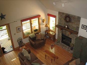 Fantastic value Almost new (2004), 4 bed/3 bath lodge home sitting high on a mountain backing to the National Forest. Wonderful southern exposure, 2levels decking, screened porch, upgrades including all hardwood floors, custom Hickory Cabinetry, Stainless Appli, Jenn air convection bake stove, and more. Landscaping is completed with wildflowers and evergreens. Great family and entertaining home. Must see! At this price it is almost giving it away!! Priced below current assessment!