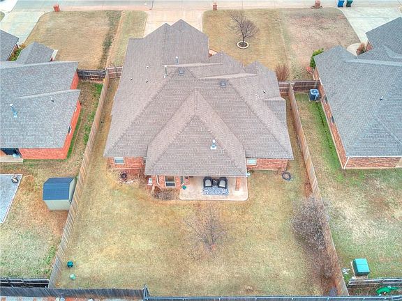 Gorgeous well maintained one owner home.Great for commuting just minutes to Tinker Air Force Base and I-40. Beautiful stone accents inside and out. Wood floors in living and fireplace with stone accents. Crown molding, custom arches, solid surface counters thru-out. Tiled walk ways. 3 bedrooms, 2 bathrooms, study or 2 livings, 3 car garage. Stainless appliances with a 5 burner gas stove, large pantry. The laundry room has storage including a folding cabinet. Large backyard with spacious covered patio. The custom features in this home are timeless. This is a must see!