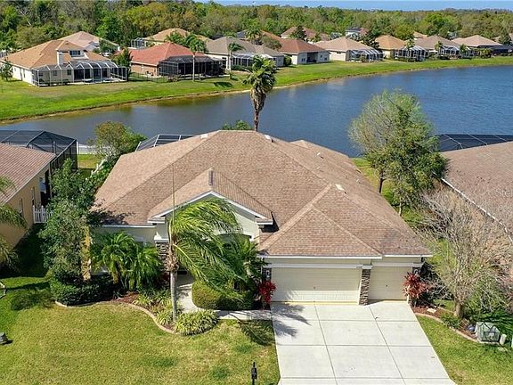 Welcome home! This spacious waterfront home is located in the upscale and highly desirable gated community of Magnolia Estates. This open split floor plan offers 5 spacious bedrooms (one can easily be used for a home office), 3 updated gorgeous full baths and an oversized 3 car garage. The huge owners suite features volume ceilings, his/hers walk in closets, sitting area with sliders leading to the pool area overlooking the breathtaking water views! The master suite is equipped with his/hers vanities, relaxing tub and separate shower. The secondary bedrooms are generously sized with beautiful new tile plank flooring. Large living/dining combo and separate family room, both have volume ceilings and sliding doors with breathtaking pool and pond views. The kitchen is open to the family room and equipped with custom wood cabinets, stainless steel appliances, granite counters, pantry and built in oven. Step outside to your paradise. relax in your screened in lanai or take a swim in your heated salt water pool or relax in the spillover spa. Enjoy Florida at its finest. Cant get a home and a neighborhood for this price anywheres else around here. Pool filter is new. Community features a playground, private community boat ramp with access to the Anclote River leading to the Gulf of Mexico. Desired Trinity/New Port Richey area with A rated schools, low HOA and NO CDD, NO flood required. This home will not last long so CALL TODAY to schedule a private tour.