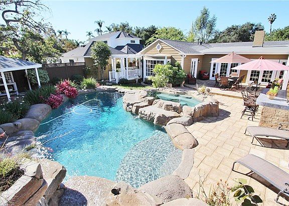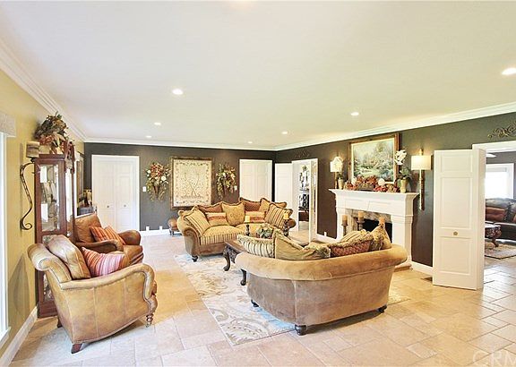 Located in historical prestigious floral park. This perfectly laid out single level home has it all. gorgeous entry way leads to separate huge living area with polished travertine flooring and fireplace with custom mantle. Enter from either side of the living room to open family/great room, which also has double french doors exiting to custom courtyard/rear patio that lends itself to extended entertainment area from inside of this gorgeous home. Family/Great room is open to remodeled kitchen w/shaker cabinets, newer stainless steel appliances, and beautiful granite counters which also leads to separate formal dining room. Master bedroom retreat with floor to ceiling bay window, entry to courtyard on one side, and separate private deck off of the other side with new patio cover and custom flooring. 3 additional spacious bedrooms, all with close access to their own bathrooms. The back yard is an unbelievable oasis and has been recently remodeled and renovated which also features new pool equipment a separate pool house, half of which is an awesome playhouse for the little ones. The garage has been renovated and is oversized for extra storage or workshop. Other features include new interior and exterior paint, all windows are new including french doors. This is an incredible home that has been perfectly cared for!